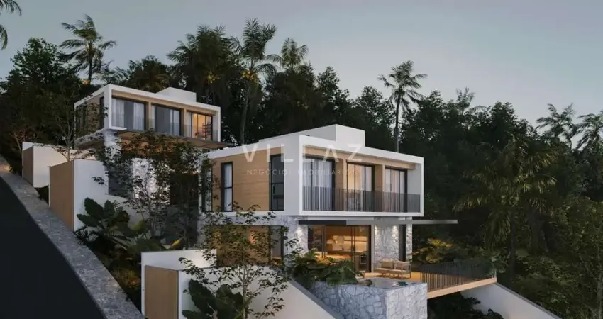 No Residencial Santa Monica, duas casas únicas foram projetadas em harmonia com a mata nativa, oferecendo privacidade, conforto e um visual impressionante da baía de Garopaba, das montanhas e da cidade.