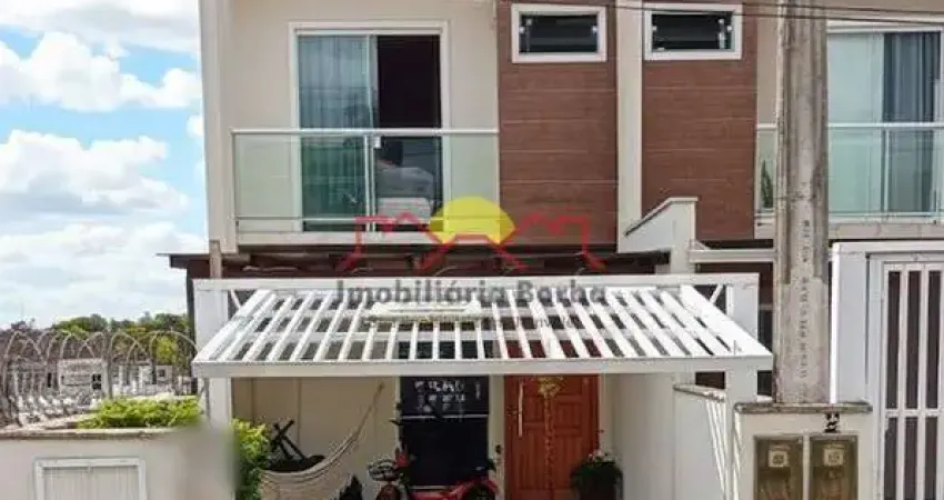 Sobrado Geminado com 109,28m, 03 quartos sendo 01 suíte, banheiro, lavabo, cozinha, sala de estar/ jantar integradas ,3 sacadas uma em cada quarto e área de serviço. Possui portão eletrônico, sistema de alarme, câmera externa, redário, área gourmet com churrasqueira, lago artificial, piso em porcelanato nas áreas frias e laminado nos quartos, além de vidros em blindex.