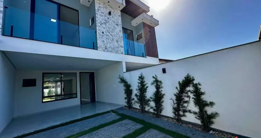 Geminado: Com 4,70 metros de abertura, 10 metros de frente e 08 metros de fundo, em uma planta muito bem distribuída em 133,76m² de área construída e 139,13m² de área total, este imóvel se destaca pela modernidade, sofisticação e conforto proporcionado pela excelente disposição dos espaços. Conta com uma garagem espaçosa com capacidade para até 02 carros, sendo 01 vaga coberta e uma vaga 01 descoberta. Possui uma ampla área social com sala de estar, jantar, cozinha conjugadas e lavanderia privativa e lavabo, conta também com um aconchegante jardim com churrasqueira a carvão. No piso superior possui 03 amplos quartos, sendo eles 03 suítes. O imóvel conta com infraestrutura para ar-condicionado, massa corrida, rebaixo em gesso, porcelanato na parte inferior e vinílico na parte superior, e toda iluminação já prontinha.