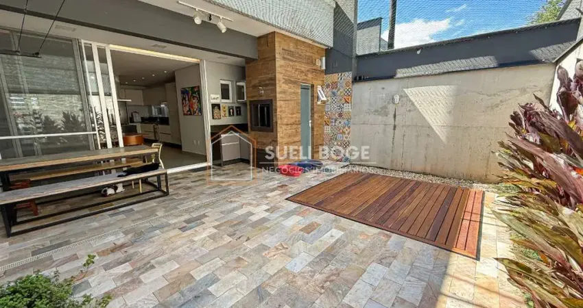 São 225,60 m² construídos com ambientes amplos e integrados com salas de estar, jantar, cozinha com ilha e área externa com churrasqueira. Banheiro para atender área da piscina e lavabo. Piso superior com 1 suíte máster + 2 suítes e espaço de home office. 2 vagas de garagem cobertas lado a lado + 1 descoberta.