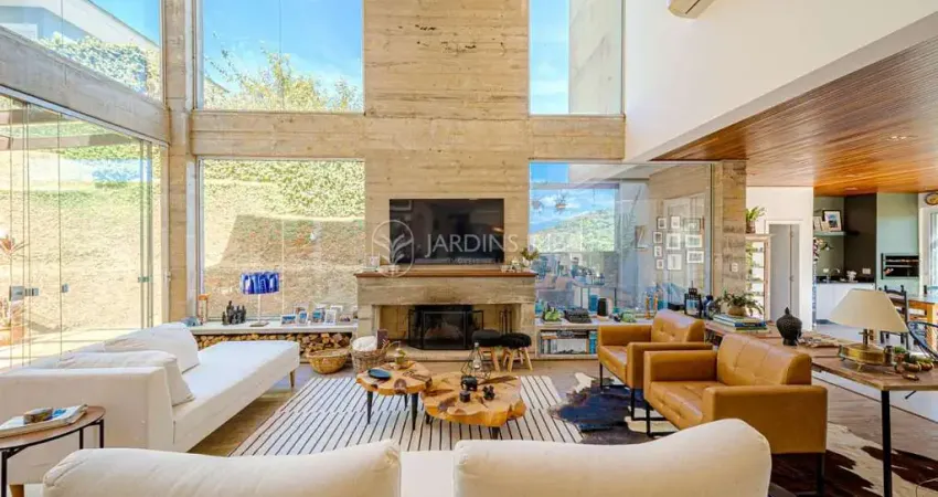Construída em uma área com 1.365m² de muito verde e com natureza presente por todos os lados, possui living totalmente integrado, 3 amplas suítes, biblioteca, escritório e sala de jogos.