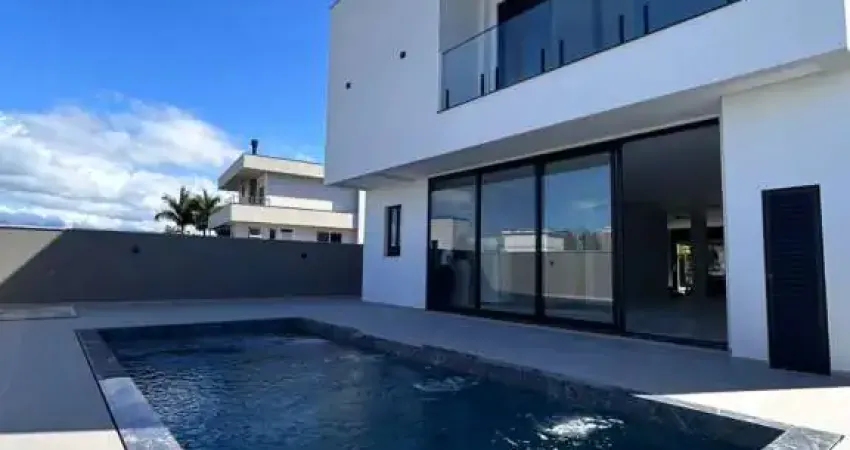 Casa em Pedra Branca, Palhoça com 307m² de area construída, área social completamente integrada, incluindo garagem de 2 vagas e area gourmet. São 3 quartos, sendo todas suítes. O imóvel possui área total de 401m², 4 banheiros. Piso Superior, 3 suites sendo uma master com closet e banheiro duplo. Todas as suites e home office com persianas automatizadas. Excelente acabamento espera para agua quente (boiler) e espera para energia solar.