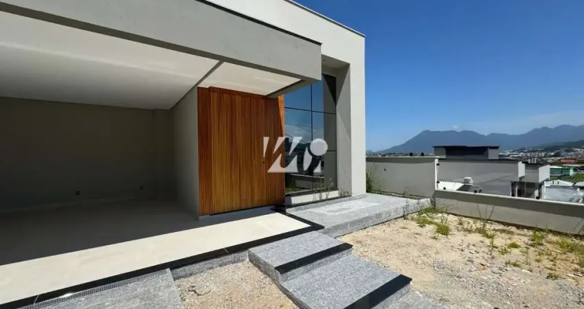 A vista permanente é para a serra do tabuleiro. Além disso, a residência possui cabeamento para TV e internet, churrasqueira, espaço gourmet, jardim, gesso, massa corrida, persianas integradas, pingadeira nas janelas e portão eletrônico, oferecendo segurança e conforto aos moradores.