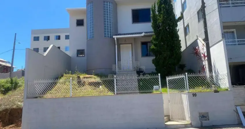Casa residência de alvenaria, contemplando um alto padrão de construção e acabamento, terreno comparte plano e parte em aclive, lugar alto, excelente vista panorâmica, residência composta por 3 dormitórios, sendo 1 suíte máster, banheiro social, sala de estar, sala de jantar, lavabo, cozinha gourmet integrada com a sala, área de serviço e amplo espaço de terreno com piscina, churrasqueira, quintal e jardim, vaga coberta para dois carros, fazendo frente para duas ruas.