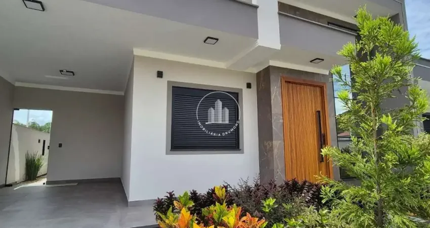 Casa 3 quartos em Forquilhas, São José com 125m² de area construida e 230m de terreno. O imóvel possui 3 dormitórios sendo 1 suíte, 3 banheiros completos e 2 vagas de garagem. A Casa tem excelente acabamento com gessso e iluminação em led, persianas automatizadas com controle remoto e ligadas na alexa, box de blindex nos banheiros, acabamentos de excelente qualidade, portão eletrônico e área gourmet com churrasqueira integrada.