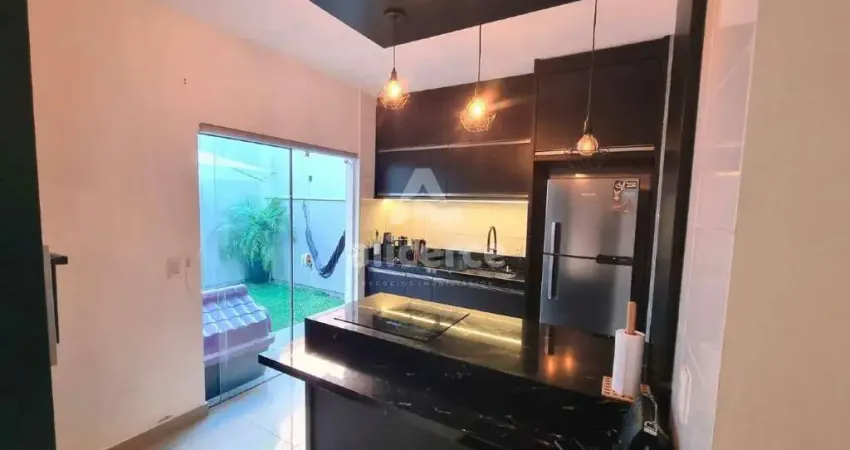O imóvel dispõe de 3 dormitórios, sendo o quarto principal com sacada, além de sala ampla e cozinha equipada com móveis planejados, proporcionando praticidade e aproveitamento inteligente dos espaços. Conta ainda com 1 banheiro no piso inferior e 1 banheiro no piso superior, garantindo comodidade no dia a dia.