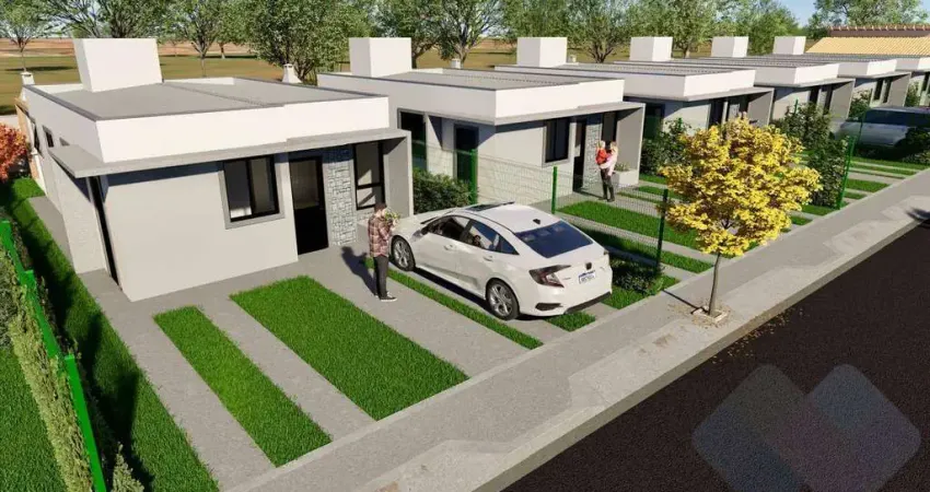Casas em condomínio fechado, com 3 dormitórios, sendo 1 suíte, sala de estar, cozinha, banheiro social e quintal privativo.