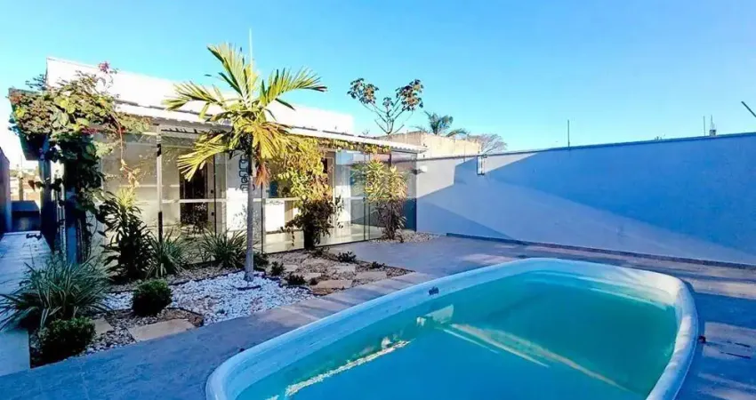 Com 176m² de área construída em um terreno de 308m², possui 3 quartos, sendo 1 suíte, 1 sala ampla, cozinha com armários planejados, integrada à área gourmet, forno a lenha, churrasqueira, piscina, depósito e garagem e 2 vagas de garagem coberta.
