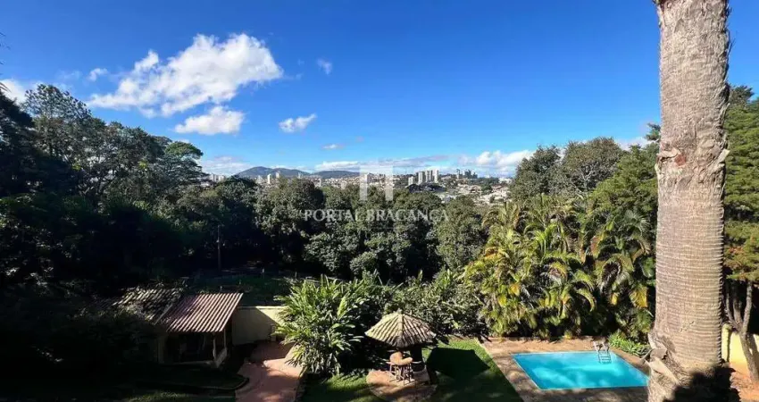 Lugar fantástico com uma vista deslumbrante da cidade, uma chácara dentro da cidade com lindo jardim com paisagismo, 2 vagas de garagem, ampla varanda, sala de estar, tv e jantar, lavabo, cozinha e copa, lavanderia e quintal, no andar superior temos 1 escritório e 1 sala intima integrada a varanda com a melhor vista da cidade e 3 suítes todas com closet sendo 1 com hidro, na área externa temos um amplo espaço gourmet com churrasqueira, quiosque, piscina e depósito.