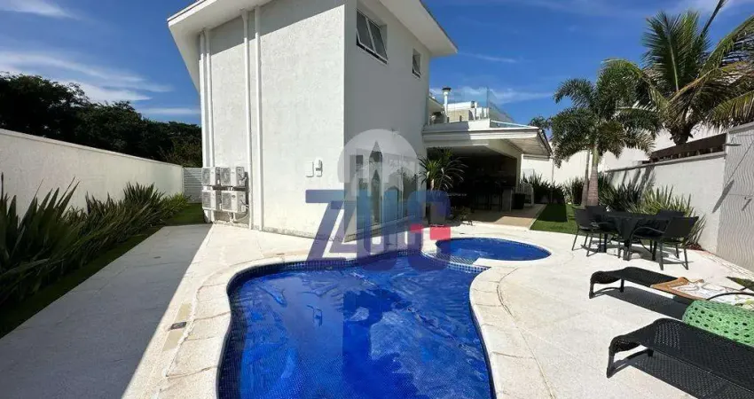 Na área de lazer temos o espaço gourmet com amplo espaço que acomoda a família e vários convidados. Bancada em frente a churrasqueira com chopeira já instalada, piscina aquecida, e um jardim que cerca toda a casa.