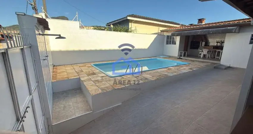 Aconchegante casa a venda, em um dos melhores bairros de Caragua. 3 dormitórios, piscina, area gour