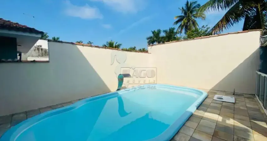Casa na praia de Pernambuco no Guarujá, com 3 dormitórios sendo 1 com ar condicionado, 2 com varanda para a piscina, e todos com ventilador de teto, 3 banheiros, sala ampla de 2 ambientes, cozinha com armarios planejados, dispensa, área de serviço, área gourmet com churrasqueira, piscina e garagem para 2 carros.