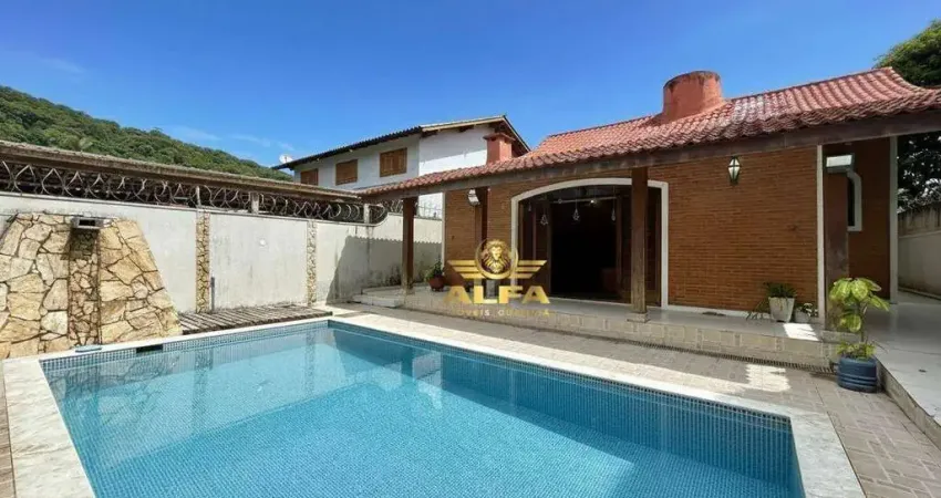 Casa com piscina, lareira e espaço gourmet no Jardim Pernambuco, próxima à Praia de Pernambuco – Alfa Imóveis Guarujá