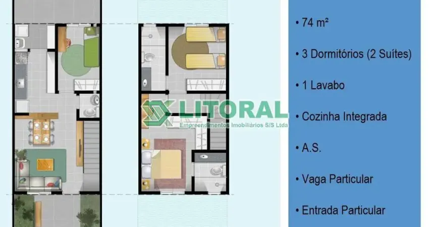 Sobrado germinado de 3 dormitórios com 2 vagas.