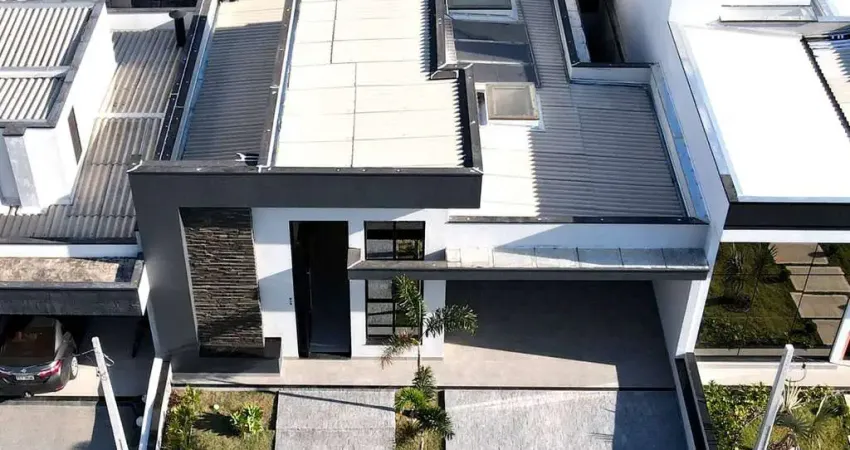 Casa com 188,57m² de construção e 300m² de terreno. Com 3 suítes, cozinha americana, lavabo, sala de estar e jatar amplas e com pé direito alto, escritório, área gourmet completa, piscina com cascata, lavanderia e 4 vagas de garagem sendo 2 cobertas.