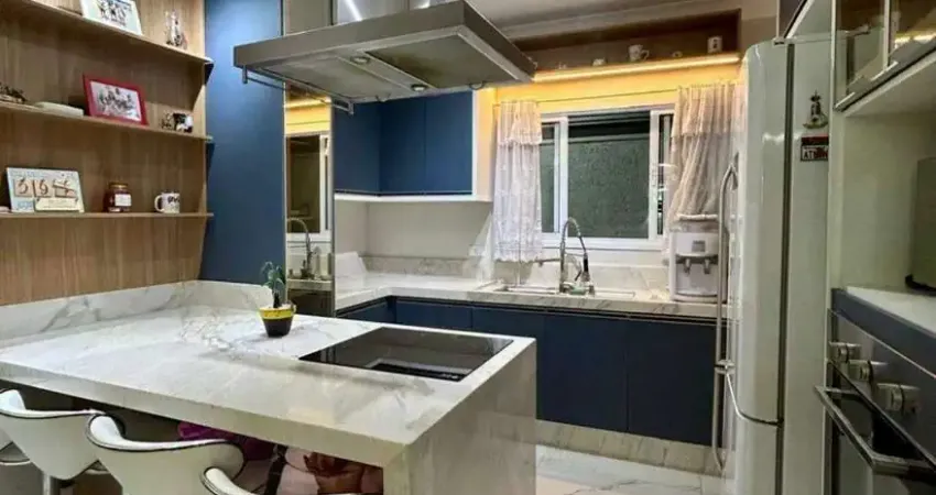 • Cozinha completa com móveis planejados e acabamentos sofisticados em bancadas de Branco Paraná