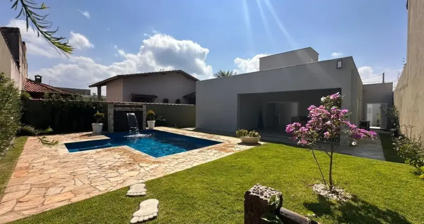 Casa de Alto Padrão no bairro Califórnia, em Itanhaém, litoral sul de São Paulo, localizada lado praia à 150 metros do mar em rua pavimentada. Imóvel com 385 m² de área total, 120 m² de área construída. Possui área gourmet moderna, piscina com cascata, churrasqueira e vaga para 03 automóveis. Sala com pé direito medindo 3,5 metros de altura e acabamento de sanca de gesso com iluminação moderna.