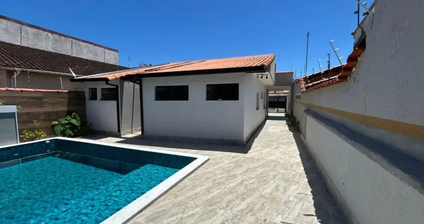 Casa localizada lado praia, a 450 metros do mar, em rua pavimentada, 3 dormitórios (2 suítes), piscina, área gourmet com churrasqueira e 4 vagas para autos - aceita financiamento