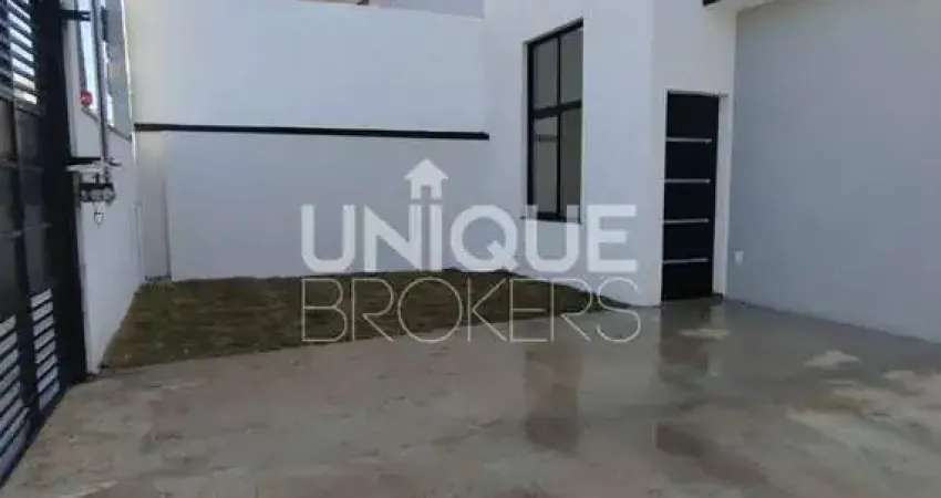 A casa está nova, é térrea, possui sala dois ambientes com o teto alto com o teto alto, cozinha ampla, banheiro social, 3 quartos sendo 1 suíte, lavanderia, piso todo em porcelanato, janelas de alumínio preto, vaga de garagem descoberta para 3 carros ou mais, quintal e portão eletrônico.