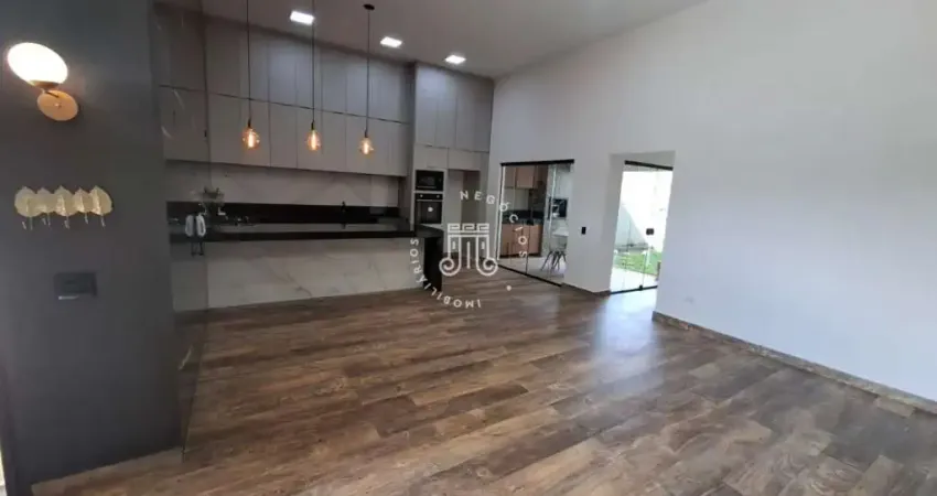 Excelente casa térrea com terreno de 498m² e área construída de 170m², pé direito duplo e distribuídos em 3 quartos sendo 1 suite, 1 banheiro, 1 lavabo, sala de estar integrada com sala de jantar, escritório, jardim de inverno, cozinha planejada e equipada com cooktop, forno, microondas e lava louças (todos embutidos), lavanderia e área gourmet.