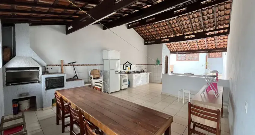 Área externa com quintal amplo, churrasqueira, fogão a lenha e banheiro de apoio, proporcionando conforto e lazer.