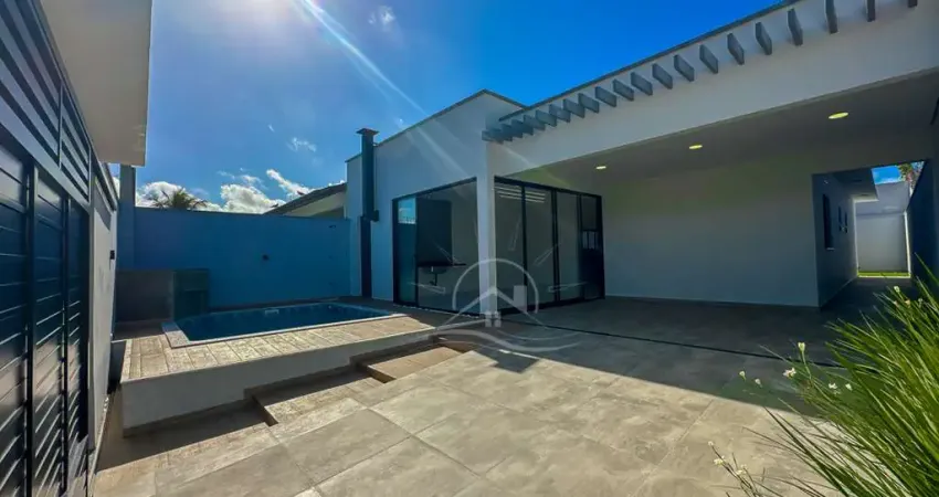 Com piscina - Garagens: 4 - Banheiros: 3 - Edícula: Não - Churrasqueira: Sim - Área Total: 264,00 m² - Área Construída: 135,00 m² - Área gourmet, Calçamento, Churrasqueira, Cozinha em conceito aberto, Cozinha integrada, Espaço Lazer, Esquadrias Alumínio, Excelente acabamento, Fino acabamento, Iluminação na piscina, Iluminação pública, Imóvel Novo, Jardim, Lavabo, Piscina com hidro