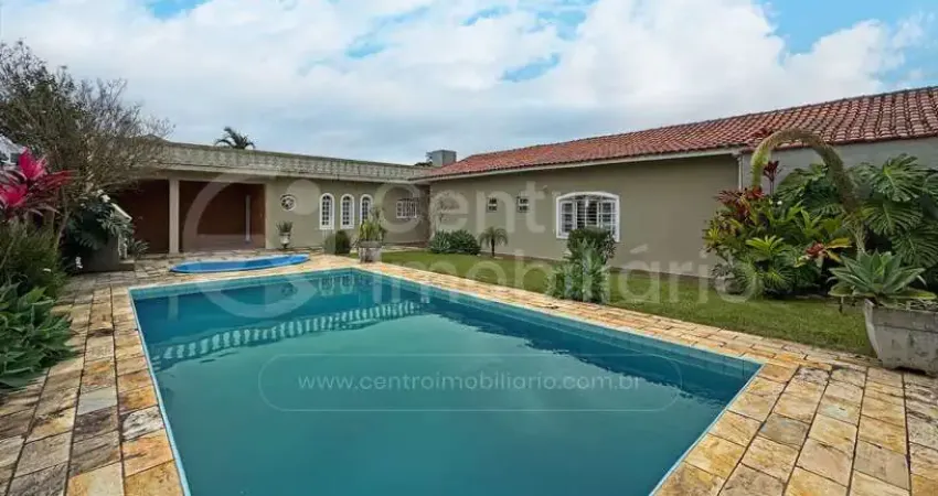 - Aprox. 850m da praia (14 min. a pé e 2 min. de carro) - piscina - churrasqueira - 3 quartos (1 suíte) - 4 vagas - Edícula - 177 m² de área construída (530 m² de área total)