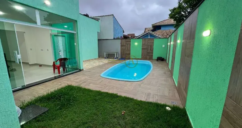 Casa novíssima térrea, 100 metros da praia, piscina e lavabo