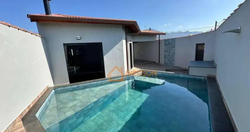 Casa nova para venda em Peruíbe. Com acabamento fino, onde entrega luxo e conforto, Lar esse que dispõe de sala que integra a cozinha gourmet com churrasqueira e equipada com armário embutido, banheiro social, 3 quartos sendo 1 suíte. Além disso conta com 3 vagas de garagem, e lazer que possui piscina para relaxar e também se divertir.