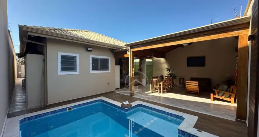 Com piscina - Garagens: 3 - Banheiros: 2 - Edícula: Não - Churrasqueira: Sim - Área Total: 287,00 m² - Área Construída: 167,00 m² - Área gourmet, Calçamento, Cerca Elétrica, Churrasqueira, Espaço Lazer, Esquadrias Alumínio, Excelente acabamento, Fino acabamento, Iluminação pública, Piscina, Piscina com hidro, Planejados, Portão automático, Sala p/ 2 ambiente, Ventilador de teto