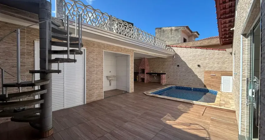 Com três dormitórios uma suíte ,sala cozinha , três banheiros ,área de serviço nos fundos ,com um banheiro e churrasqueira e uma piscina .