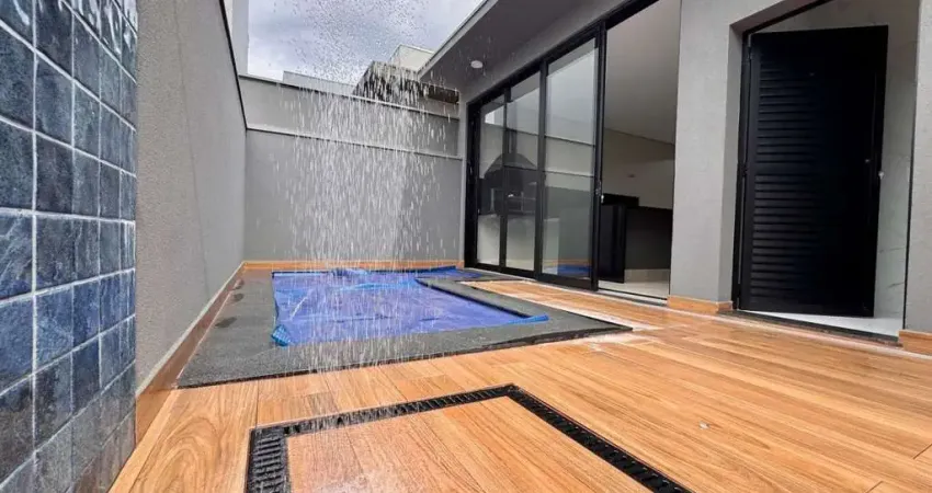 Casa à venda no Condomínio Terras de San Pedro, em Bonfim Paulista, com 154 metros quadrados de área construída em um terreno de 250 metros quadrados. O imóvel conta com três suítes, salas de estar e jantar com pé-direito de quatro metros, esquadrias de alumínio em todas as janelas, lavanderia, banheiro externo e casa de gás. Diferenciais incluem preparação para instalação de chopeira, saídas USB e cabo de rede em todos os ambientes, além de garagem coberta para dois carros. A área de lazer oferece piscina aquecida com hidromassagem, chuveirão e iluminação especial.