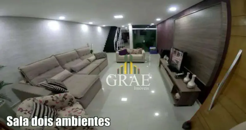 Sobrado 250 m² com 3 dormitórios, 1 suite, sala 2 ambientes, lavabo, lavanderia com churrasqueira, piso porcelanato, copa,cozinha planejada, quartos com piso laminado e garagem 4 carros; à venda na Vila Dora - Santo André/SP.