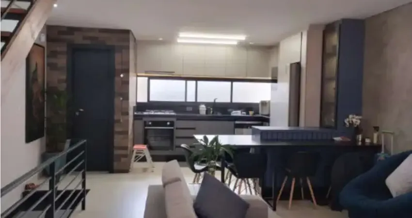 Ótimo sobrado com 2 quartos + uma suíte, 4 banheiros, 3 vagas de garagem, churrasqueira, sala grande, cozinha grande com armários embutidos.