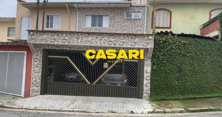 Lindo sobrado localizado a 1 km do Paço Municipal, rua tranquila, próximo ao comércio. Possui 3 dormitórios sendo 1 suíte e closet, 2 banheiros e 1 lavabo, sala de jantar e estar, cozinha planejada, quintal nos fundos com churrasqueira, área de serviço com cobertura de vidro retrátil, garagem coberta fica no térreo e comporta até 2 carros.
