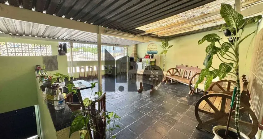 A casa principal conta com garagem coberta para dois veículos no térreo. Sobre a garagem, um terraço amplo e coberto, com metragem generosa, que abriga lavanderia, espaço de descanso e churrasqueira, criando uma área funcional e acolhedora.