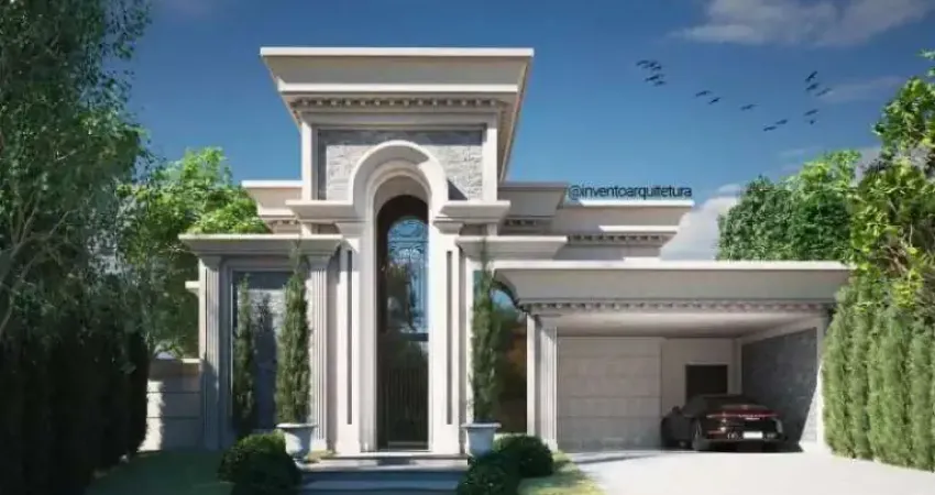 Casa em construção no condomínio Quinta do Golf Jardins com fachada moderna, medindo 450m² de terreno e 245m² de construção, com sala 2 ambientes, cozinha rica em armários planejados, despensa, escritório,3 suítes com armários embutidos, closet, área gourmet com churrasqueira, piscina, quintal e 2 vagas de garagem coberta.