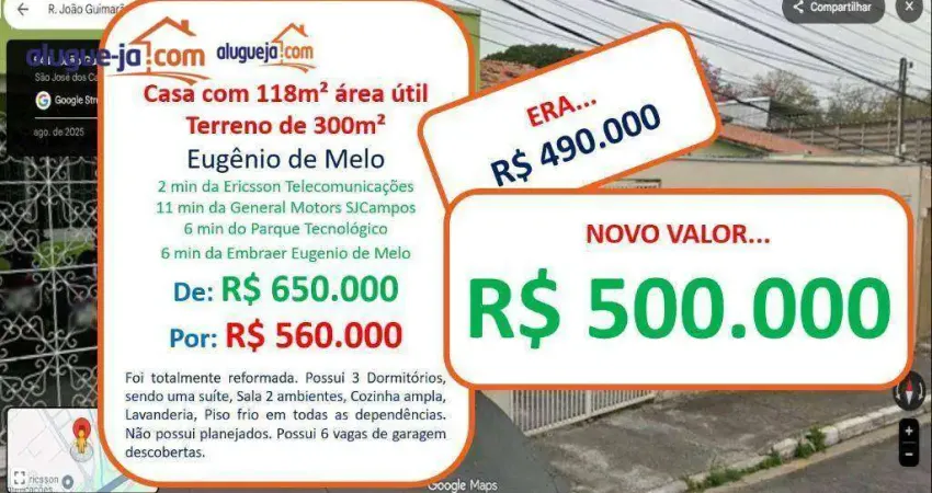 Casa com 3 dormitórios à venda, 118 m² por R$ 500.000,00 - Eugênio de Melo - São José dos Campos/SP