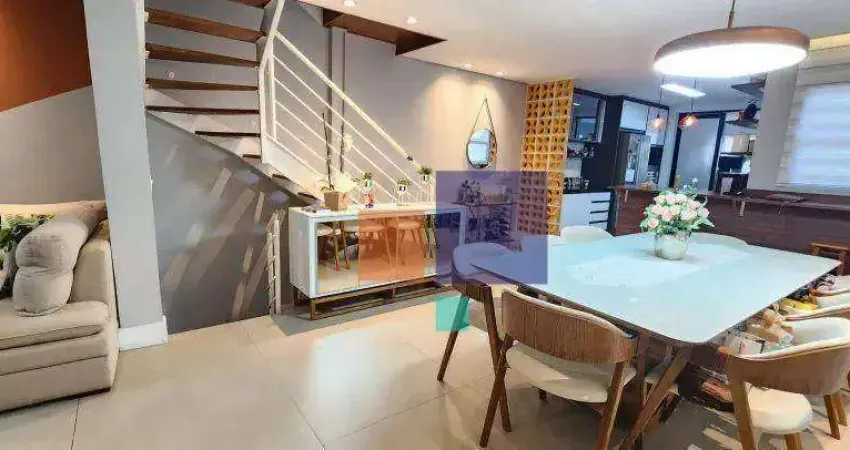 O térreo possui uma sala para dois ambientes, cozinha integrada e área de serviço. O andar de cima conta com 3 quartos, sendo suítes, com 1 deles dividindo o mesmo banheiro.
