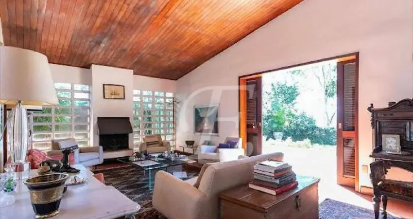 A iluminação natural é um dos pontos fortes desta residência, com o sol da manhã entrando por grandes janelas, proporcionando um ambiente claro e arejado. Os gramados ao redor, adornados com um paisagismo cuidadoso, oferecem uma vista livre e relaxante, ideal para momentos de tranquilidade em família. O charme rústico da casa é complementado por pisos, portas, janelas e forro de teto em madeira, criando uma atmosfera acolhedora e elegante.