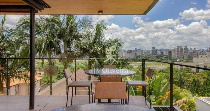 Fácil acesso para o bairro ou Faria Lima e Marginal. Linda vista e total tranquilidade interna. Arquitetura moderna com delicioso jardim, academia, banheiro e sala de estar com vista para o skyline da cidade, 676m² - Terreno 490m² - Área construída