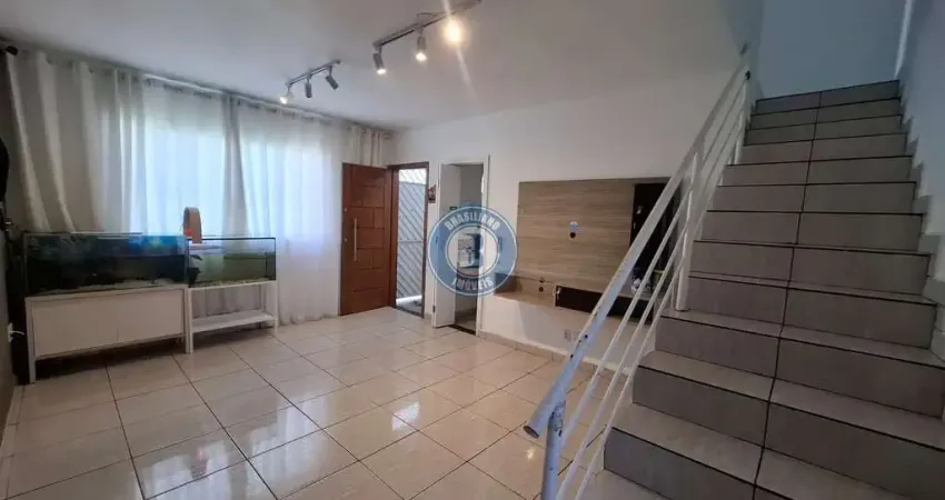 Sobrado em condomínio fechado, com três dormitórios (sendo uma suíte) - sala - cozinha - lavabo - área de serviços - duas vagas de garagem.
