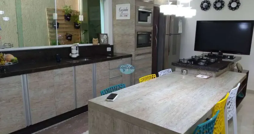LINDO SOBRADO, BEM LOCALIZADO COM 03 DORMITÓRIOS COM ARMÁRIOS, 01 SUÍTE, 02 VARANDA, 02 SALAS COM LINDO ACABAMENTO, VARANDA, HALL DE ENTRADA, LINDA COZINHA PLANEJADA COM ARMÁRIOS, PIA E MESA,TERRAÇO COM CHURRASQUEIRA, BEM VENTILADO, GARAGEM PARA 03 CARROS COM WC E MEZANINO, PORTÃO ELETRÔNICO. ÓTIMA OPORTUNIDADE.