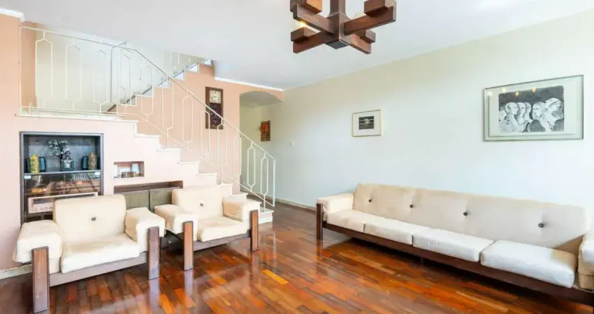 No térreo, o imóvel oferece uma ampla sala de estar, sala de jantar separada, lavabo e uma cozinha espaçosa com armários planejados, despensa e espaço para refeições. Também dispõe de lavanderia e banheiro de empregada, garantindo funcionalidade no dia a dia.