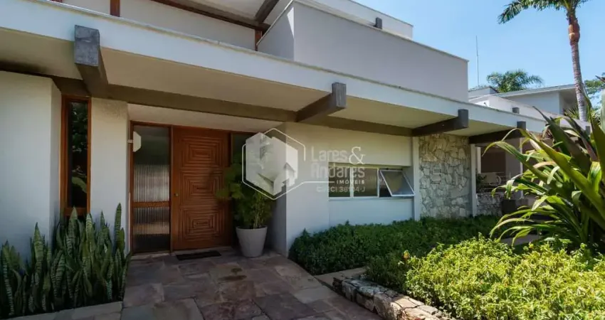 A área externa é um verdadeiro refúgio urbano, com piscina, churrasqueira, vestiários e um jardim impecável que envolve a casa. Toda a residência é adaptada para acessibilidade, com elevador, cadeira elevatória e circulação preparada para cadeira de rodas. Há ainda 2 dormitórios de serviço, 6 vagas de garagem e gerador que atende a casa toda.