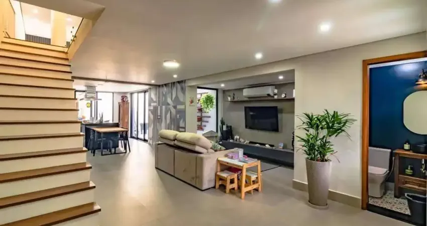 Imóvel conceito aberto, completamente modernizado com acabamento alto padrão. Porcelanatos conceituais linha premium Portinari e Ceusa. Porcelanas e peças de acabamento premium Deca, com aquecimento em todas as móvel sustentável com central geradora de energia solar (painéis fotovoltaicos) e aquecimento de água independente por boiler com dupla pressurização. A capacidade de geração atende completamente ao imóvel e não gera conta de consumo na maior parte dos meses. Rooftop uma beleza a parte, com pergolado e guarda-corpo em alumínio linha, superior em madeira Ipê. Instalação de ar condicionado em todos os quartos e banheiros com box até o teto e ventilação com instalação e estrutura de lareira a gás a carvão na área gourmet externa com coifa e churrasqueira interna à gás na ilha da cozinha, também mantida coifa e fogão linha Pro na ilha da cozinha. Armários planejados em todos os cômodos com acabamento alto padrão, medidas customizadas para máximo aproveitamento e armazenagem, sistema de amortecimento em todas gavetas e portas (instalados há menos de 3 meses, dentro da garantia).Todas persianas automatizadas por controle remoto. Sistema de monitoração e alarme instalado.