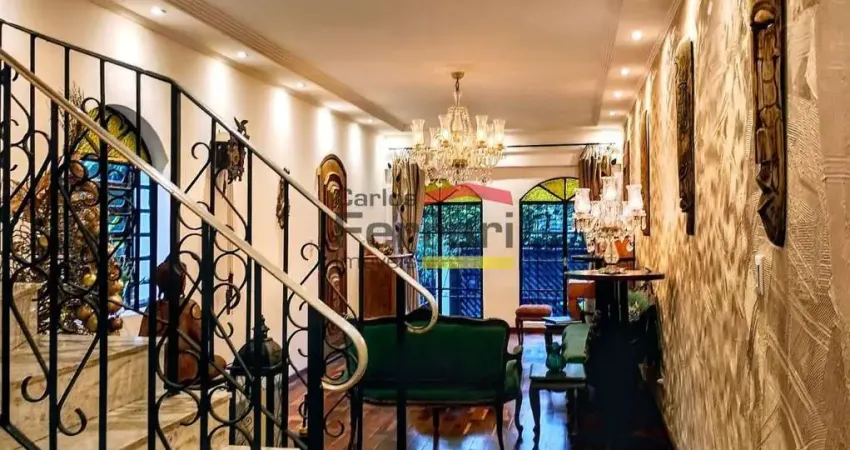 Linda casa de 4 andares com bastante claridade a ventilação, rodeada de árvores frutíferas e paisagismo tropical exuberante, conta com 3 dormitórios bem distribuídos, área gourmet, biblioteca, pub, sala de jogos integrada ao jardim, lavanderia, escritório, despensa, o andar com a cozinha, copa e amplo living, possui uma varanda com vista privilegiada para o jardim, a garagem possui vaga coberta para 6 carros, e além de 4 andares, a casa conta com sótão e um porão.