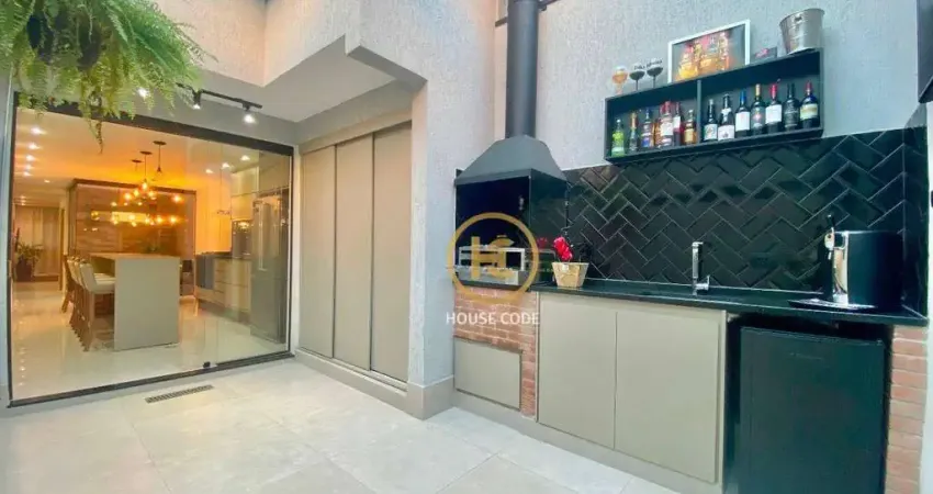 Realmente é encantador este sobrado! Após adentrar o portão frontal, você se depara com uma área de ampla garagem descoberta para 2 automóveis, acompanhada de um lavabo. A casa é toda bem iluminada naturalmente e oferece uma ampla sala com acabamento fino em porcelanato e conta com um lavabo moderno. Ao lado, há um charmoso jardim de inverno, integrando-se à cozinha planejada, que por sua vez está conectada à área gourmet com uma bela churrasqueira e pia, perfeita para relaxar com seus convidados, familiares e amigos. A área gourmet também possui uma lavanderia estrategicamente escondida por um armário planejado.