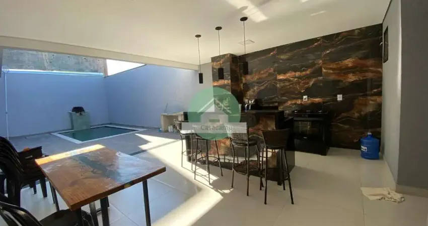 Terreno de 300 metros com 176 metros de área construída, sendo sala com pé direito alto, cozinha com uma linda ilha, e bancada em pedra são Gabriel e móveis planejados, área gourmet maravilhosa com piscina, 3 dormitórios sendo 1 suíte com planejados, 3 banheiros, lavanderia individual e garagem para 2 carros e motos.