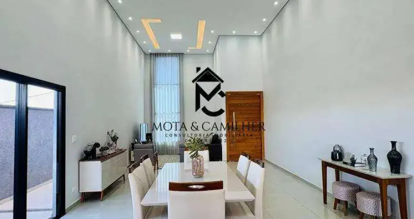 ? Seu Novo Padrão de Vida te Espera em Condomínio de Alto Padrão! ? Luxo, Sofisticação e Lazer Completo em uma Residência Exclusiva. Descubra o prazer de morar em uma casa onde cada detalhe foi pensado para o seu conforto. Localizada em um dos condomínios mais desejados da região, esta residência é o refúgio perfeito para sua família ? unindo o requinte do design moderno com a praticidade de um lar pronto para morar. ? Área Construída: 211,11 m² de pura elegância em um terreno de 375 m² ? Dormitórios: 3 quartos, sendo 1 Suíte Master e 2 dormitórios com Demi-Suíte (banheiro compartilhado com duas portas), garantindo privacidade e funcionalidade para toda a família ? Ambientes Sociais: Duas salas amplas e arejadas, com teto rebaixado em gesso e iluminação em LED, criando atmosferas aconchegantes e sofisticadas ? Cozinha Planejada: Moderna, funcional e totalmente equipada para suas criações culinárias ? Espaço Gourmet dos Sonhos: Área de lazer completa com churrasqueira e integração total à área externa ? perfeita para receber amigos e celebrar momentos especiais ???? Piscina Privativa: Desfrute de momentos de relaxamento e diversão com total privacidade ? Acabamentos Premium: Piso em porcelanato e materiais de alto padrão em todos os ambientes ? Comodidades: Lavanderia e 1 lavabo de apoio ? A casa está pronta para morar! É só entrar e viver o melhor da vida. ? Estrutura e Lazer do Condomínio: ? Portaria 24 h e ronda motorizada ? ? Piscinas, salão de festas e espaço gourmet com churrasqueira a carvão ? ? Academia equipada ? ? Quadra poliesportiva e praça ? ? Lago, áreas verdes e pomar com árvores frutíferas ? ? Playground e espaço pet ? ? Condição Especial: Proprietário avalia permuta em imóvel de menor valor. ? Agende sua visita e venha conhecer essa joia em um dos melhores condomínios da região!